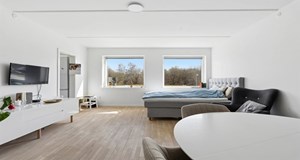 Prisen for rækkehuset er 4.275.000 kroner, og selvom grundarealet er på kun 123 kvadratmeter, får man et veludnyttet hjem. Her er ejerudgiften også endnu ikke oplyst.